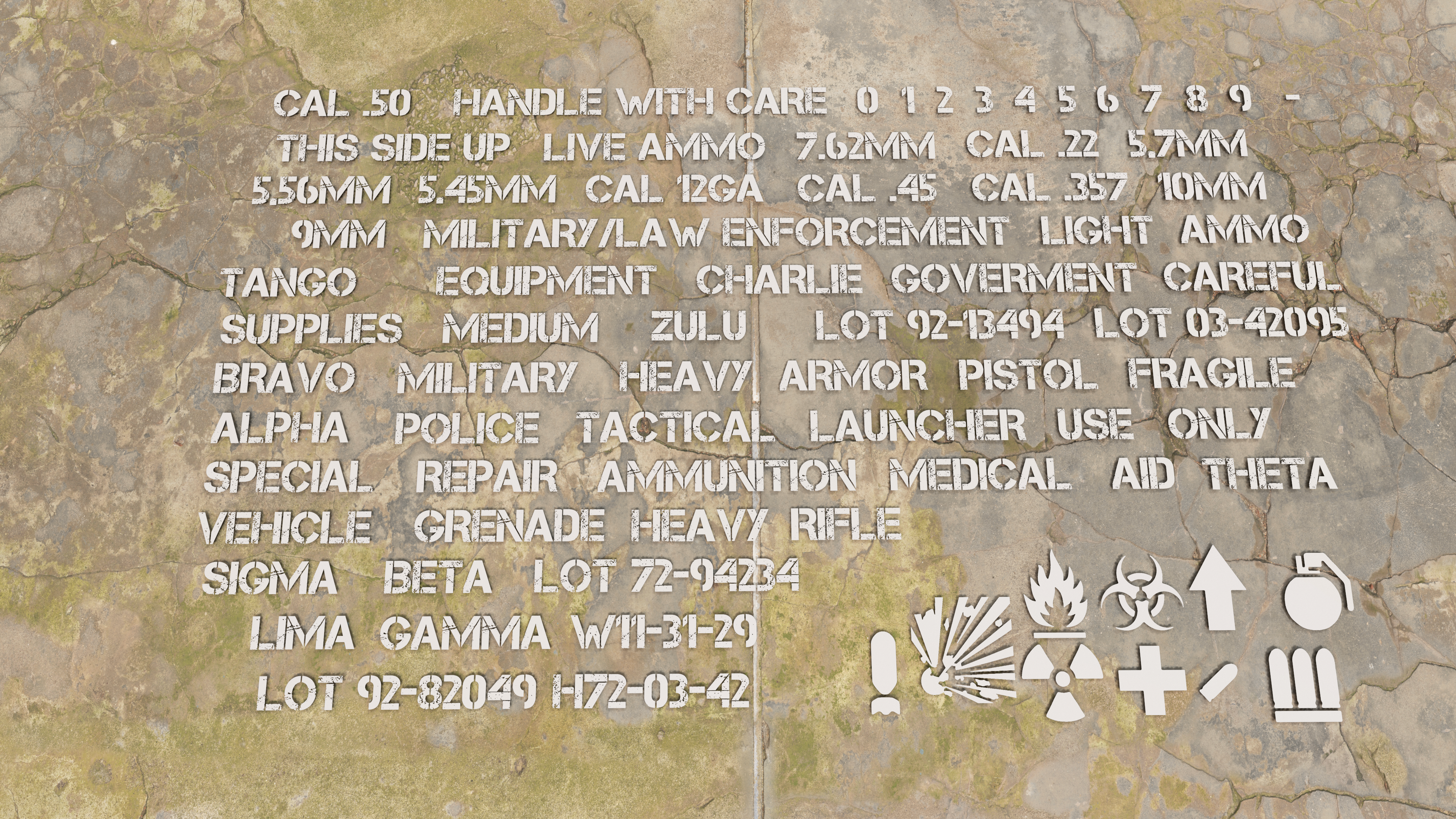 In addition to color variations, you'll also get amazing decal pack, which will let you easily mark any cases as special purpose, depending on its usage (so you can have 4 identical weapon case models, but with clearly distinct purposes):